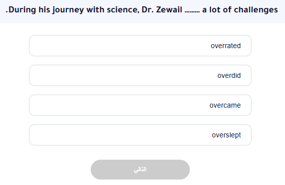 Read Moreالاختبار لمراجعة كلمات وجرامر الدرس الاول عدد الاسئله 36 الوقت 30 دقيقة موقع اختبار الكتروني اهلا بكم موقع اختبار الكتروني