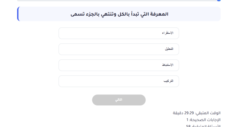 Read Moreموقع اختبار الكتروني اهلا بكم موقع اختبار الكتروني ابدأ الاختبار الآن التالي الوقت المتبقي: 5:00 دقيقة الإجابات الصحيحة: 0 الأسئلة