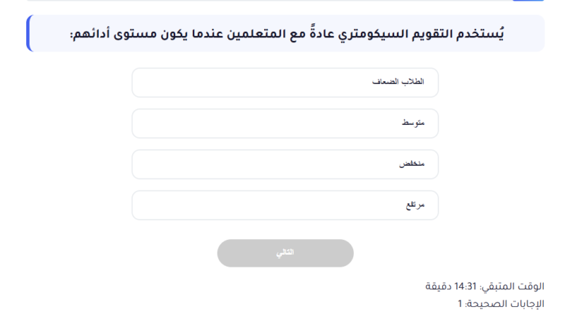 اختبار الكتروني على طرق تعليم الفئات الخاصة